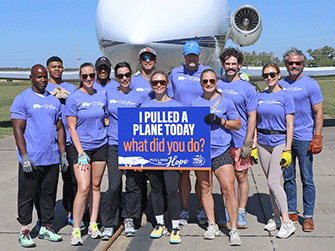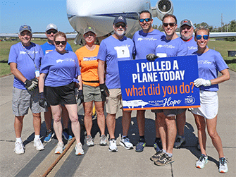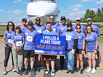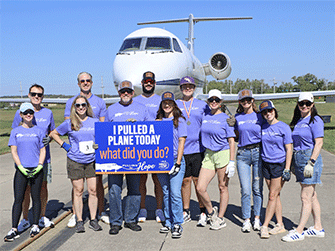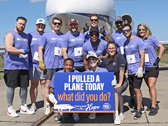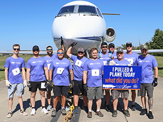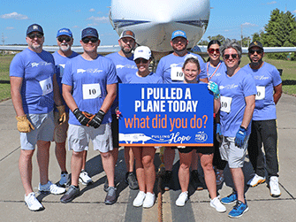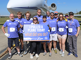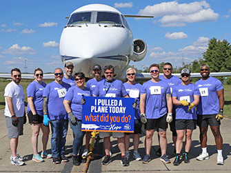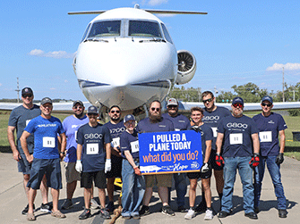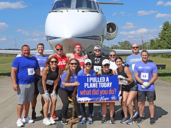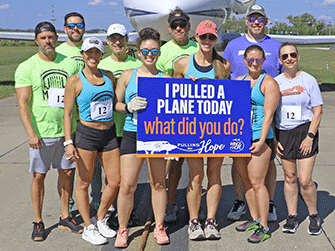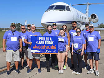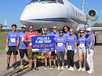 Wings of Hope’s 2nd Annual Pulling for Hope event was a huge success. Eleven enthusiastic teams participated in this friendly competition to record the fastest time pulling a 25-ton Gulfstream III jet 60 feet across the taxiway outside the Wings of Hope hangar.